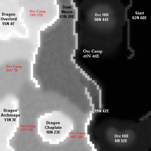 Dragon realm, a mountainous landscape scatterred with dragon icons and riddled with orcs, dragons, wurms…